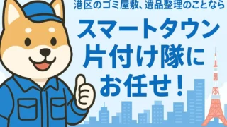 港区 赤羽橋駅(港区)でのゴミ屋敷片付け・遺品整理・不用品回収はスマートタウン片付け隊へ 赤羽橋駅(港区芝公園・東麻布・三田周辺)のゴミ屋敷片付け・遺品整理・不用品回収なら『スマートタウン片付け隊』。オフィスや高層マンション・飲食店舗・ビル内撤去にも即日対応。深夜・機密作業も安心。 港区
