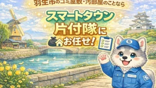 羽生市 羽生駅エリアのゴミ屋敷・遺品整理・オフィス店舗撤去なら|スマートタウン片付け隊 羽生駅周辺(羽生市中央・南・西・東エリア)でゴミ屋敷の片付け、遺品整理、オフィス・店舗撤去をご検討中の方へ。即日対応・秘密厳守・無料見積もり対応のスマートタウン片付け隊が迅速に対応します。 羽生市