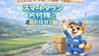 つきのわ駅周辺(比企郡滑川町月輪・羽尾・都・福田など)でゴミ屋敷片付け・遺品整理・オフィスや店舗撤去をご検討中の方へ。スマートタウン片付け隊は24時間受付・即日対応・秘密厳守でつきのわ駅エリアをサポートします。