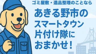 あきる野市の東秋留駅(野辺・二宮・秋留エリア)でのゴミ屋敷片付け・遺品整理・不用品回収は『スマートタウン片付け隊』にお任せ。戸建て・集合住宅・事務所・店舗の片付けまで、即日・夜間・秘密厳守で対応いたします。